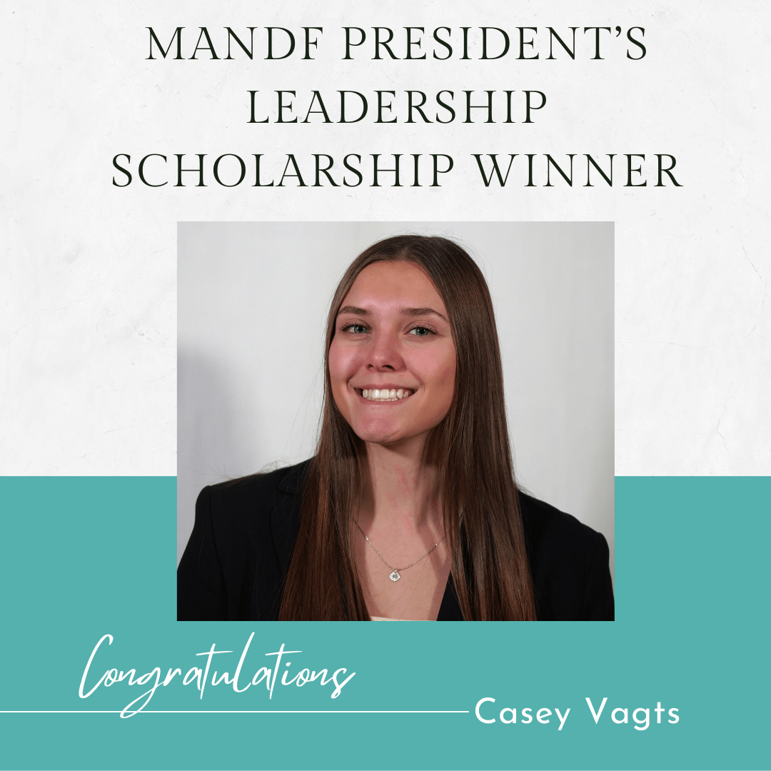 “I am honored to be chosen as a recipient of the President’s Leadership Scholarship. I am pleased to know that you recognize my potential in the field of nutrition. I have continually pushed myself outside my comfort zone during my undergraduate degree which has led me to some amazing leadership opportunities. To say that I am grateful for the MAND Foundation would be an understatement. The financial help allows me to put more effort into my courses as well as be able to dedicate time towards volunteering. I understand that you have made an investment in my future success, and for this I am very fortunate.”